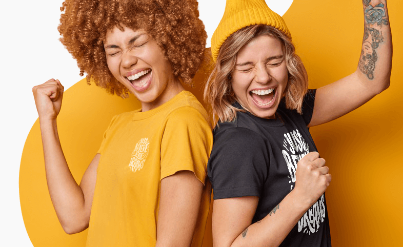 We don't just print your designs on cool merch. We're also your brand's biggest cheerleaders! With printed neck labels, custom packing slips, and plastic-free shipping, we make it super simple to keep your brand, well... totally on-brand!